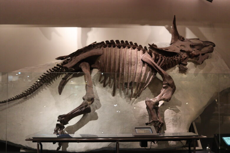 例えば、地球館地下1階に展示されている「トリケラトプス」は実物の化石(博物館の化石標本はレプリカが多い)で、ほとんど例が見られないほど保存状態が良く「世界で最も美しいトリケラトプス標本」と言われています。